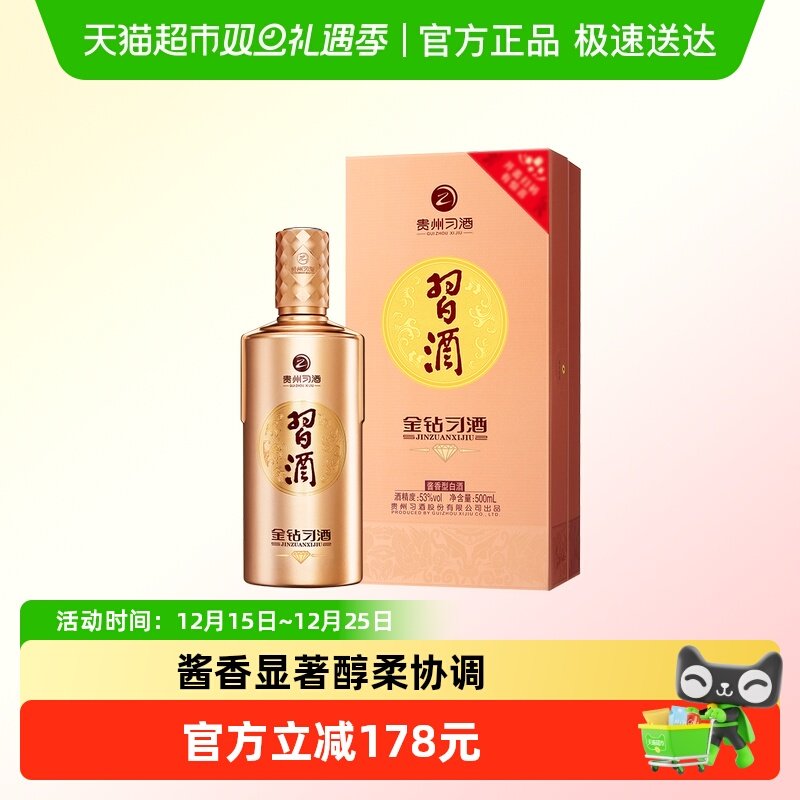 贵州习酒白酒(新版)金钻500ml*1瓶无礼袋纯粮食白酒