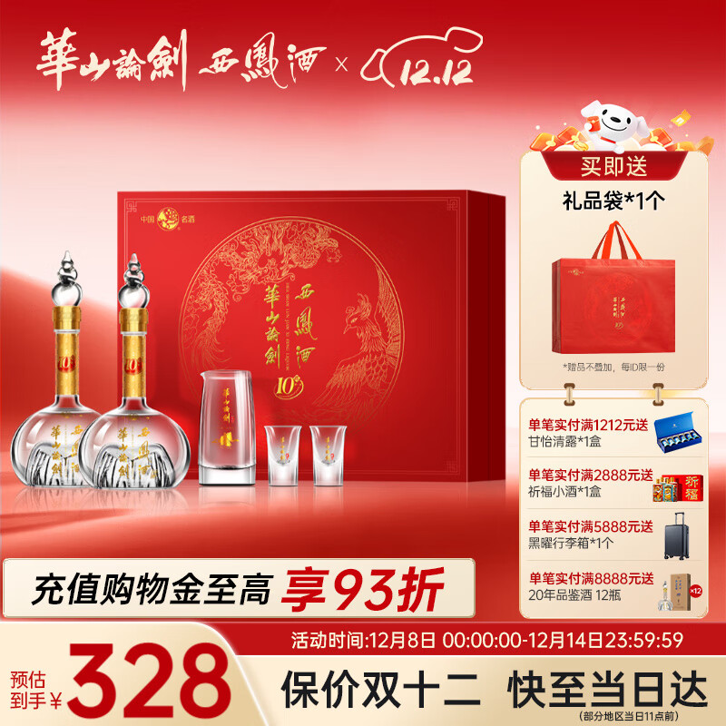 旗舰店西凤华山论剑10年45度经典送礼礼盒双瓶名酒喜酒 45度 500mL 2瓶