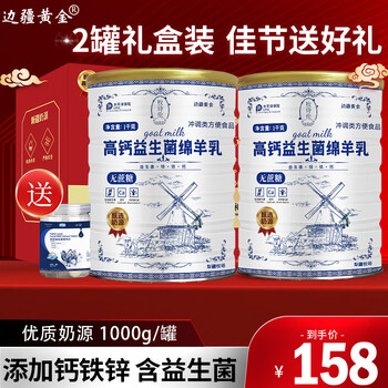 旗舰店边疆黄金1000g大罐无蔗糖添加绵羊奶粉成人中老年高钙益生菌蛋白营养粉 大罐1000g(2罐礼盒装送1盒奶片)