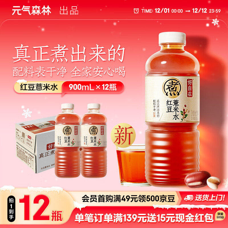 旗舰店元气森林好自在 红豆薏米水 元气自在水 无糖饮料整箱装 大包装饮品 900ml 红豆薏米 900ml*12瓶