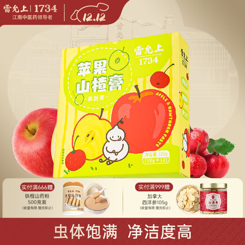 旗舰店雷允上苹果山楂膏0添加冲水即食鲜果熬制精选原料营养好胃口独立小袋装 苹果山楂膏120克(10克x12条)