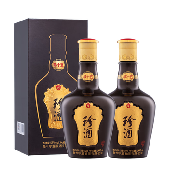 自营珍酒 珍十五 酱香型白酒 53度500ml*2 两瓶装(含礼品袋)