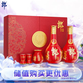 自营郎酒 红花郎15 酱香型白酒 53度 500ml*2瓶 礼盒装