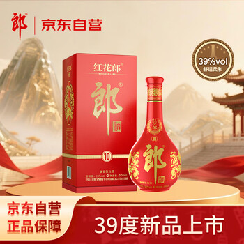 自营郎酒红花郎10第5代 酱香型白酒 39度 500ml 单瓶装 低度白酒