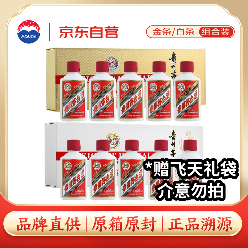 茅台(MOUTAI)53度茅台小金条+小白条50m10瓶 双礼盒组合