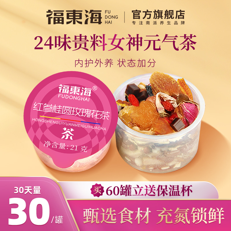 旗舰店福东海24味红参桂圆玫瑰花茶红枣枸杞茶补女神元气小罐养生茶包