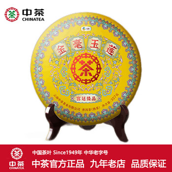 中茶牌茶叶 云南普洱茶 2024年金毫玉莲宫廷臻品熟茶饼 单饼装 357克 * 1饼