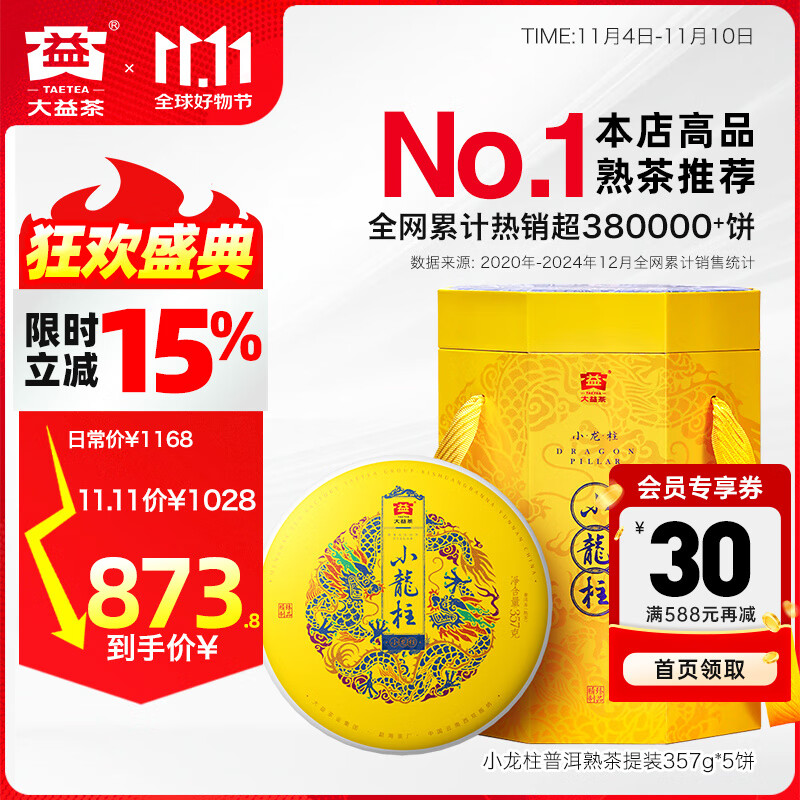 旗舰店大益茶叶 普洱茶 皇茶系列明前芽茶 小龙柱 普洱熟茶 自己喝 送礼 解块茶120g-单罐装(买2罐送礼袋)