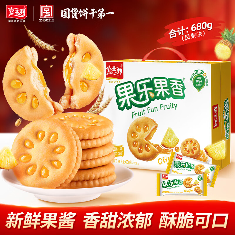 自营嘉士利果乐果香 零食饼干果酱夹心饼干早餐饼 凤梨味680g/整箱 零食礼盒
