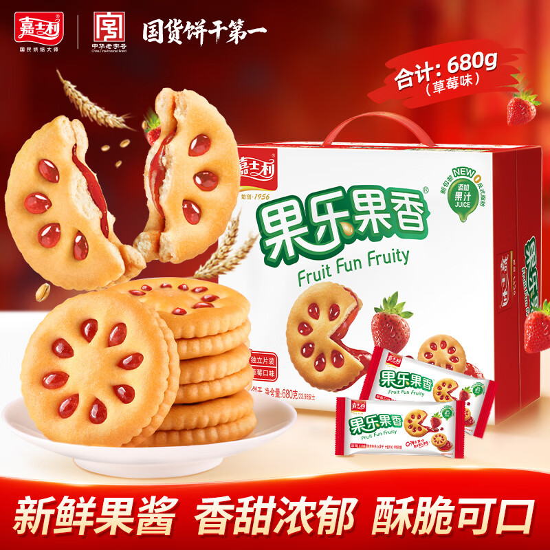 自营嘉士利零食果乐果香早餐果酱夹心饼干草莓味680g/盒 零食礼盒团购