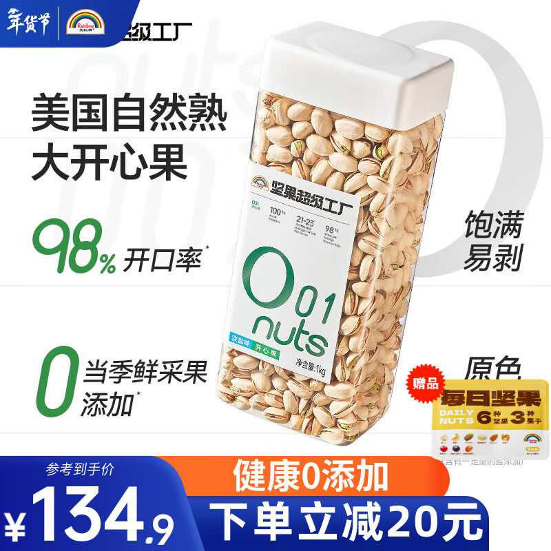 旗舰店天虹牌(Rainbow)2斤开心果原色无漂白大颗粒美国坚果炒货干果孕妇零食品团购送礼 1kg美国大颗粒淡盐味开心果