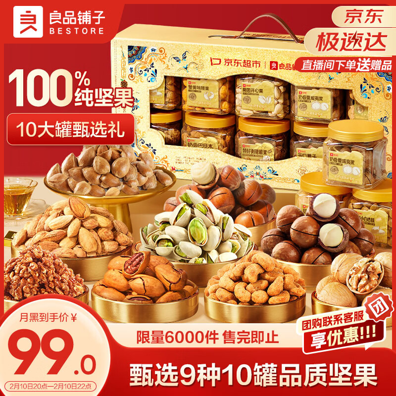 自营良品铺子纯坚果礼盒1605g/10罐!零食礼包坚果年货礼盒节日春节送礼团购