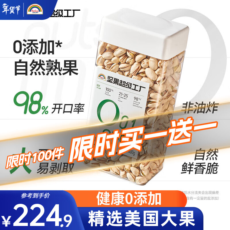 旗舰店天虹牌(Rainbow)2斤开心果原色无漂白大颗粒美国坚果炒货干果孕妇零食品团购送礼 【到手2罐】800g美国大粒头开心果