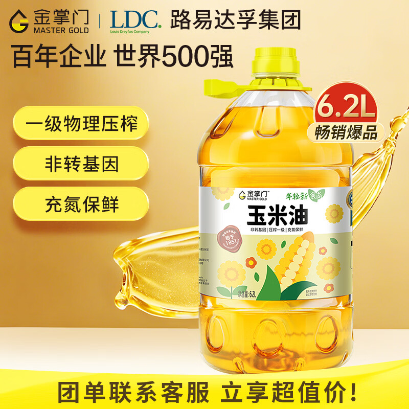 自营金掌门食用油 非转基因压榨一级(富含植物甾醇)玉米胚芽油6.20L