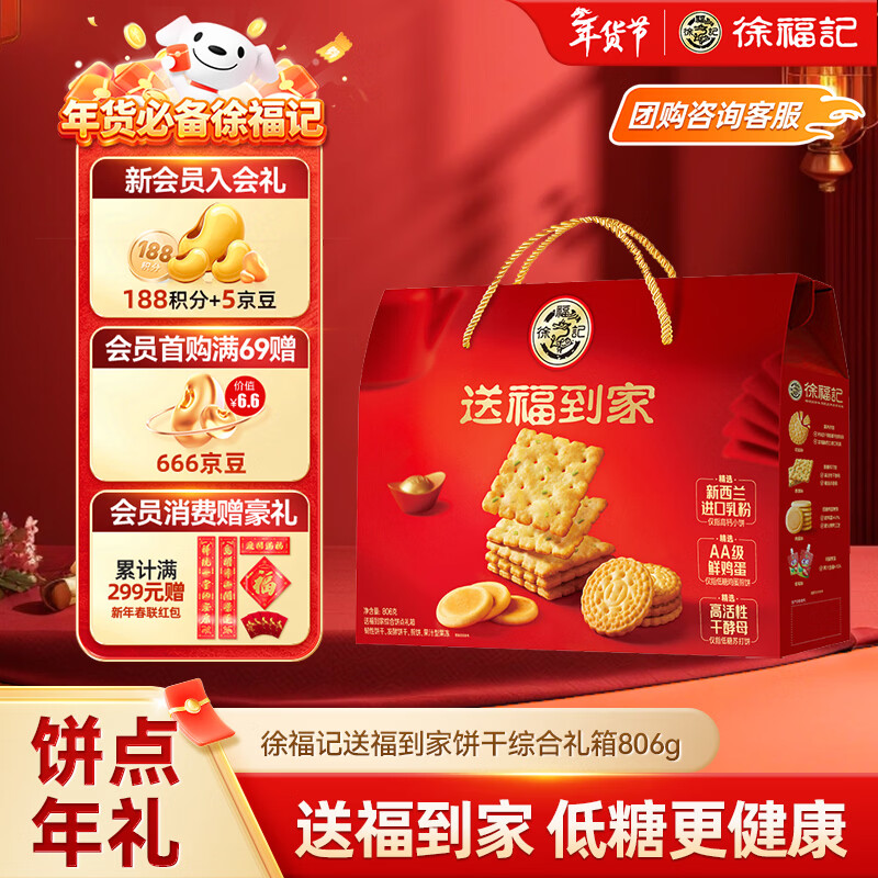 自营徐福记送福到家低糖饼点礼箱806g超1斤饼干礼盒零食大礼包新年送礼