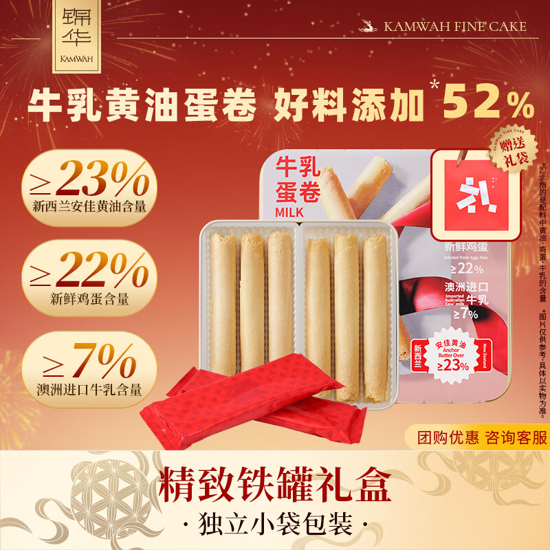 自营锦华牛乳鸡蛋卷336g酥卷点心饼干年货礼盒糕点点心办公室零食代早餐