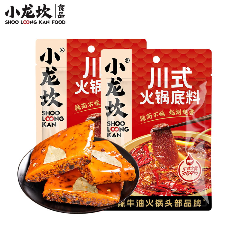 旗舰店小龙坎 火锅底料 川式牛油底料 重庆火锅香锅四川麻辣烫调料 川式牛油底料150g*2袋