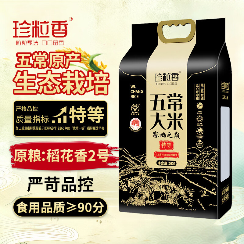旗舰店珍粒香特等五常大米新国标 原粮稻花香2号大米优选原粮油亮香软当季新米 【寒地之巅】特等五常大米5kg*1袋「口碑之选」