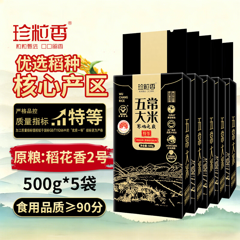 旗舰店珍粒香特等五常大米新国标 原粮稻花香2号大米优选原粮油亮香软当季新米 【寒地之巅】特等五常大米500g*5袋「绵软油亮」