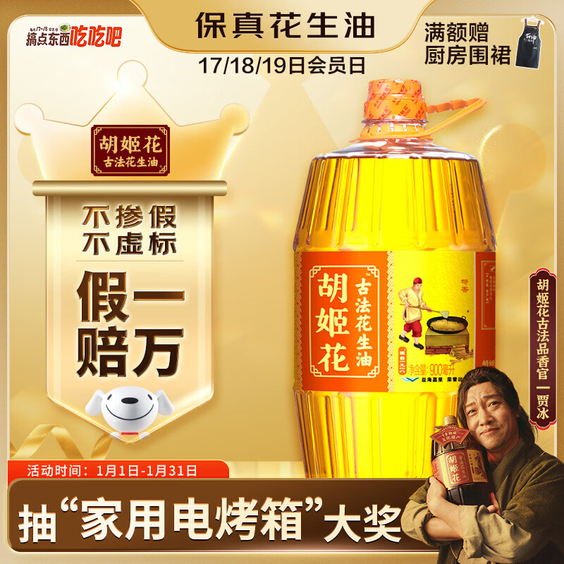 自营胡姬花 食用油【保真花生油】压榨一级古法花生油900ML(新老包装随机发)