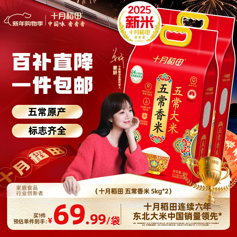 百亿补贴十月稻田【2025年新米】大米 五常香米 5kg*2袋