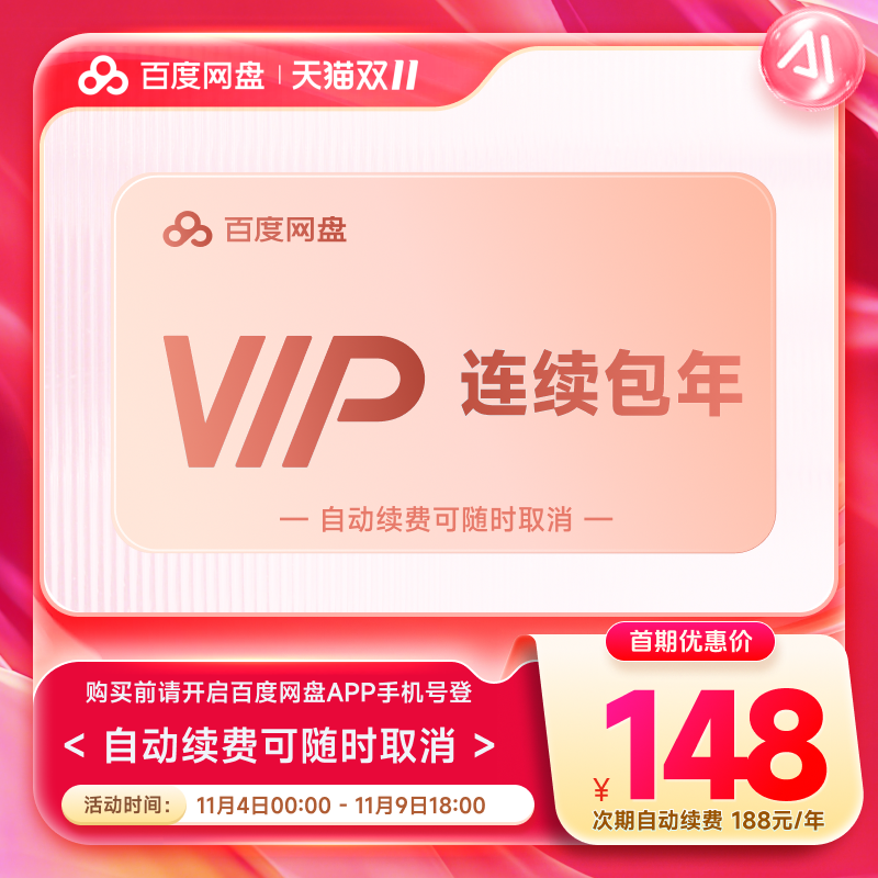 旗舰店【自动续订】百度网盘连续包自动续订VIP年卡 云盘 填登录手机号