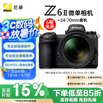 自营尼康(Nikon)Z6II(Z6 2/Z62)全画幅微单相机 微单套机 (24-70mm f/4 S微单镜头 约2,450万有效像素)