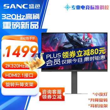 自营SANC盛色24.5英寸2K超频320Hz FastIPS显示器1ms 硬件低蓝光 耳机挂架小夜灯 升降支架电竞电脑屏幕D55
