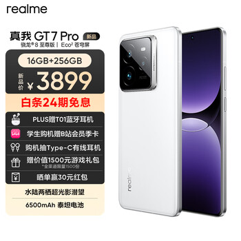 旗舰店真我(realme)GT7 Pro 骁龙8至尊版 水陆两栖超光影潜望 6500mAh泰坦电池 太空探索设计 智能AI拍照电竞游戏手机 光域白 16GB+512GB