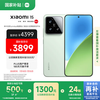 自营小米15 国家补贴 徕卡光学Summilux高速镜头 骁龙8至尊版移动平台 12+512 浅草绿 5g手机国补