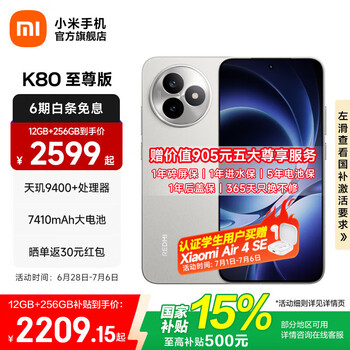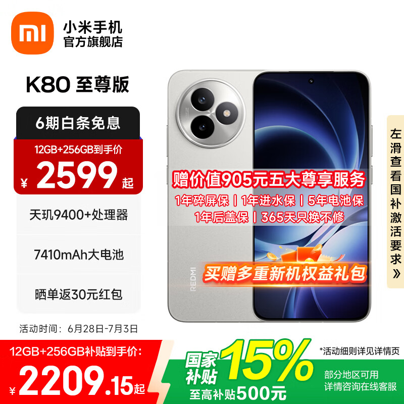 旗舰店小米红米K80至尊版 【国家补贴】新品5G小米手机 REDMI红米手机 月岩白 12GB+256GB