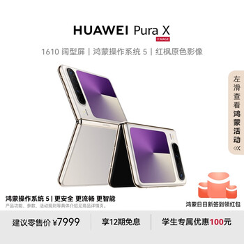 自营HUAWEI Pura X 12GB+512GB月影灰 1610阔型屏 鸿蒙操作系统5红枫原色影像 折叠屏手机 华为鸿蒙智能手机