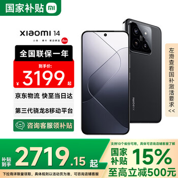 旗舰店小米14 国家补贴 新品5G手机 徕卡镜头 光影猎人900定制影像传感器第三代骁龙8处理器1.5K 5G智能手机 黑色 16GB+512GB