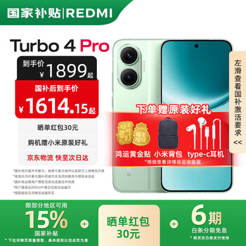 旗舰店小米红米Turbo4 Pro 国家补贴 第四代骁龙8s 7550mAh长续航 新品5G手机 绿色 12GB+256GB