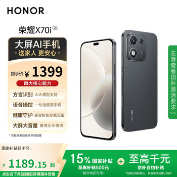 自营荣耀X70i 一亿像素 AI拍照键 大屏AI 高亮OLED护眼屏 超轻薄 银发人群 8+256 绒黑色 5G手机 国家补贴