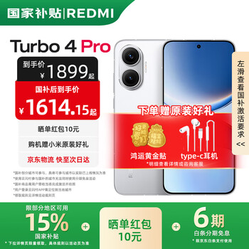 自营小米 REDMI Turbo 4 国家补贴 天玑 8400-Ultra IP68防水 12GB+256GB 祥云白