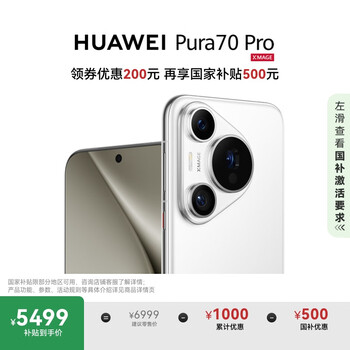 自营HUAWEI Pura 70 Pro 雪域白 12GB+512GB 超高速风驰闪拍 华为鸿蒙智能手机