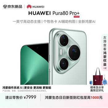 自营HUAWEI Pura 80 Pro+ 16GB+512GB 釉青一英寸高动态主摄 个性色卡AI辅助构图 华为鸿蒙智能手机