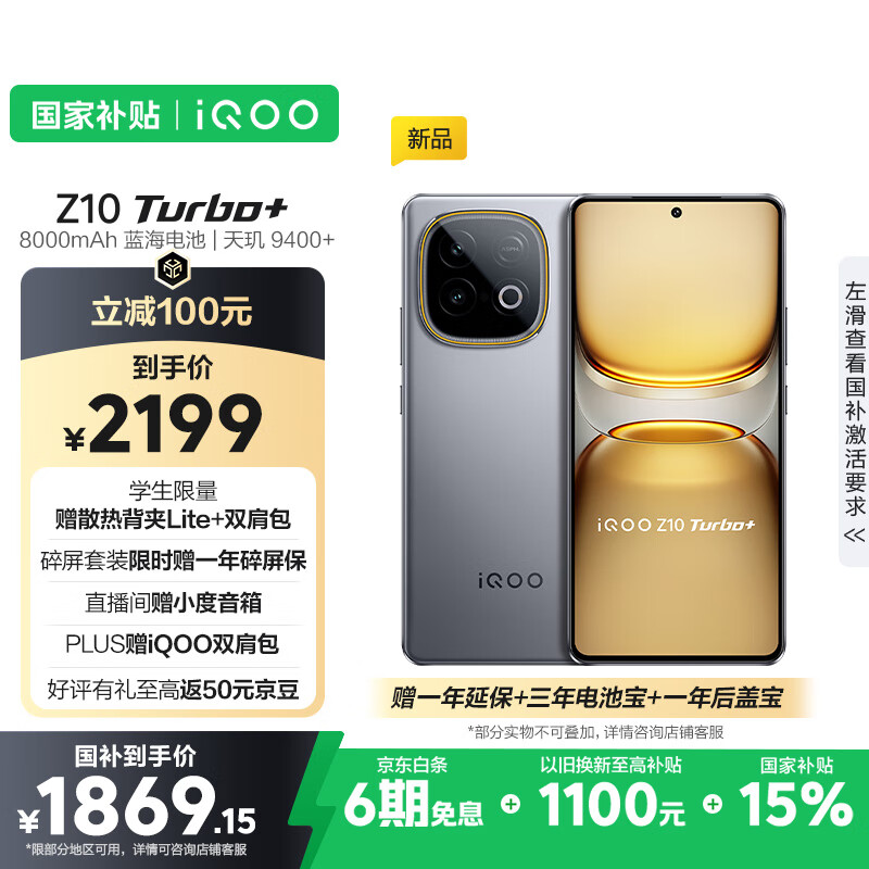 自营vivo iQOO Z10 Turbo+ 12GB+256GB 极地灰 天玑9400+旗舰芯 8000mAh超薄蓝海电池 国家补贴 电竞手机
