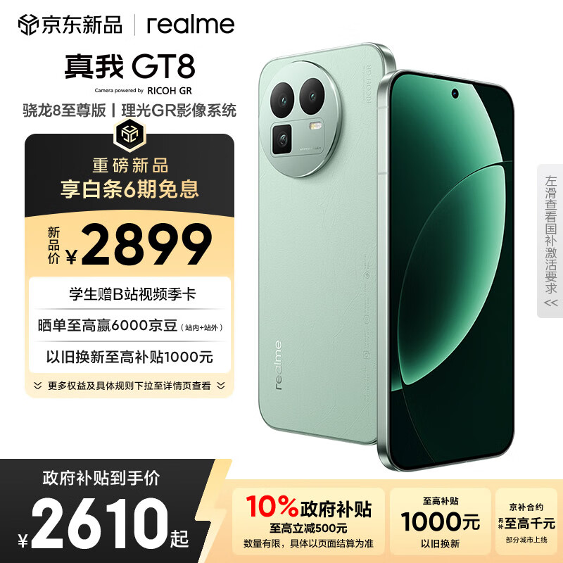 自营realme真我GT8 骁龙8至尊版 电竞独显芯片 2K 144Hz高刷直屏 5000万潜望长焦 电竞游戏学生手机12+256绿