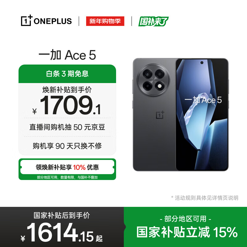 自营一加 Ace 5 12GB+256GB 全速黑 oppo 国家补贴 第三代骁龙 8 冰川电池 游戏AI智能5G手机
