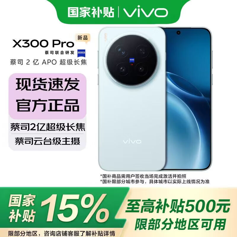 旗舰店vivo X300 Pro 蔡司2亿APO超级长焦 蓝图影像双芯 5年持久流畅OriginOS 6 AI手机 BH30 自在蓝 16GB+512GB 官方标配