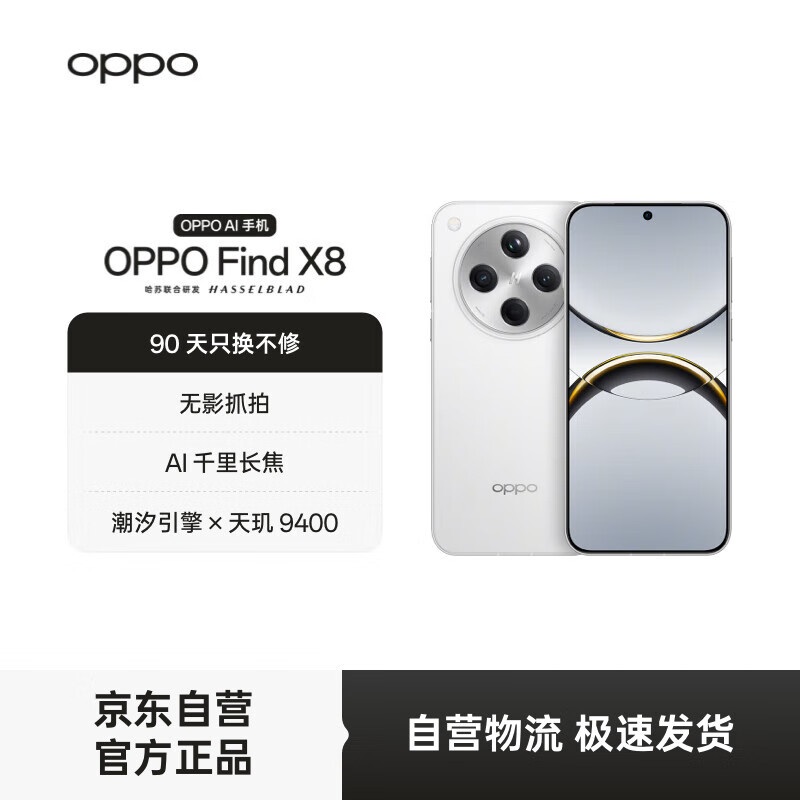 自营OPPO Find X8 12GB+256GB 浮光白 无影抓拍 超轻薄直屏 天玑9400 AI一键问屏 5630mAh冰川电池 5G 手机