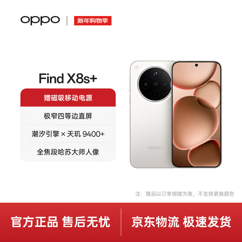 自营OPPO Find X8s+ 12GB+256GB 月光白 极窄四等边 天玑9400+ 哈苏人像 超长续航电池 AI 5G 旗舰手机