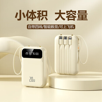 旗舰店倍特源充电宝自带线20000毫安时大容量超薄迷你耐用小巧轻薄移动电源快充适用小米苹果安卓手机便携 月幕米【自带线+国产电芯】20000M
