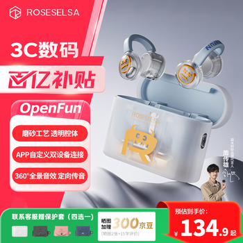 旗舰店弱水时砂【2025新款】OpenFun蓝牙耳机耳夹式真无线挂耳运动跑步开放式通话降噪骨传导概念适用苹果安卓 白灵兽【八仓现货】