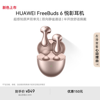 自营华为FreeBuds 6 悦彰耳机 无线蓝牙半开放式耳机 双向静谧通话 翻译功能 水滴耳机 玫瑰金【新色】