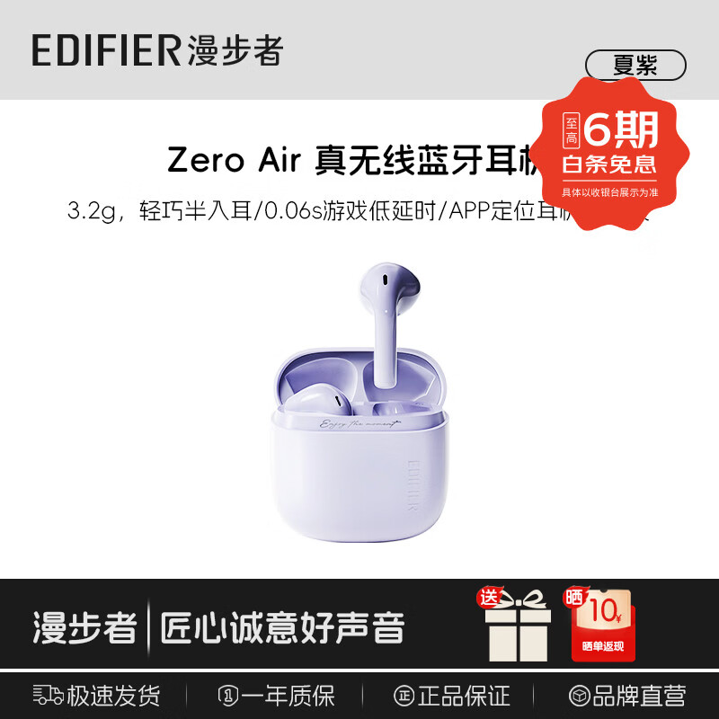 旗舰店漫步者EchoAir【定位防丢】真无线蓝牙6.0耳机半入耳式降噪超长久续航同声传译适用全部手机耳塞耳机踏青 Zero Air夏紫【下单赠+晒单送】