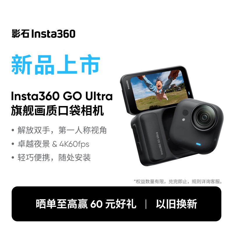 自营影石(Insta360)【新品】GO Ultra旗舰影像口袋相机4K运动相机Vlog骑行跑步亲子 标准版 星曜黑
