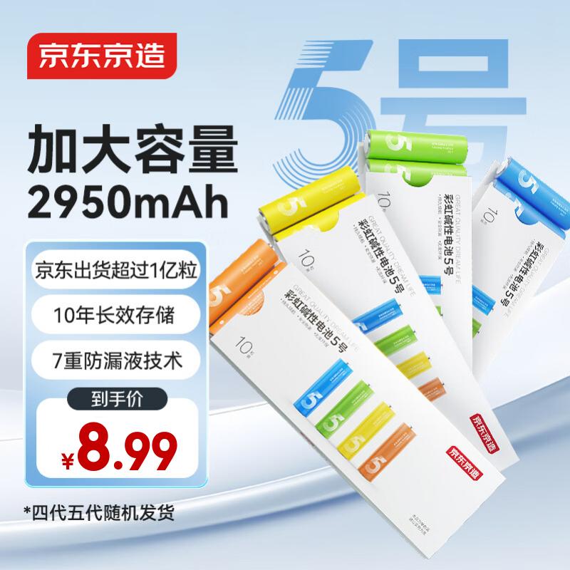 自营京东京造5号电池10节单色装彩虹碱性电池无汞环保 玩具/血压计/血糖仪/遥控器/挂钟/电子锁/体脂秤/鼠标